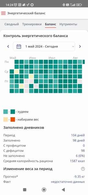 | Итого за день | 4100 | 1489 | 92 | 65 | 132 |