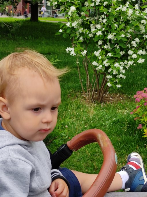 Всем доброго самочувствия! Сегодня ходила по просёлочной дороге с внуком на коляске, жара + 29, умные часы на коляску никак не реагируют, не считают шаги.Днем немного помогла подстричь газон. ( С коляской