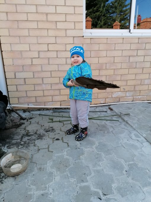 За минут 30-40 нашей прогулки она: хватала большую лопату и