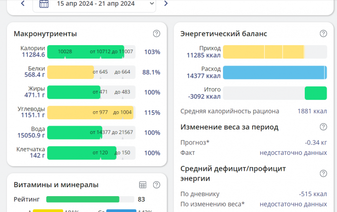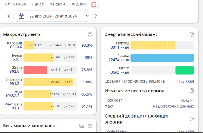 | Итого за день | 2075 | 2435 | 193 | 109 | 159 |