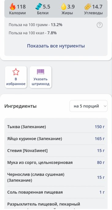 | Кол-во | Калории | Белки | Жиры | Углеводы | |