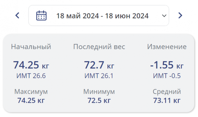 | Итого за день | 2185 | 1565 | 72 | 72 | 147 |