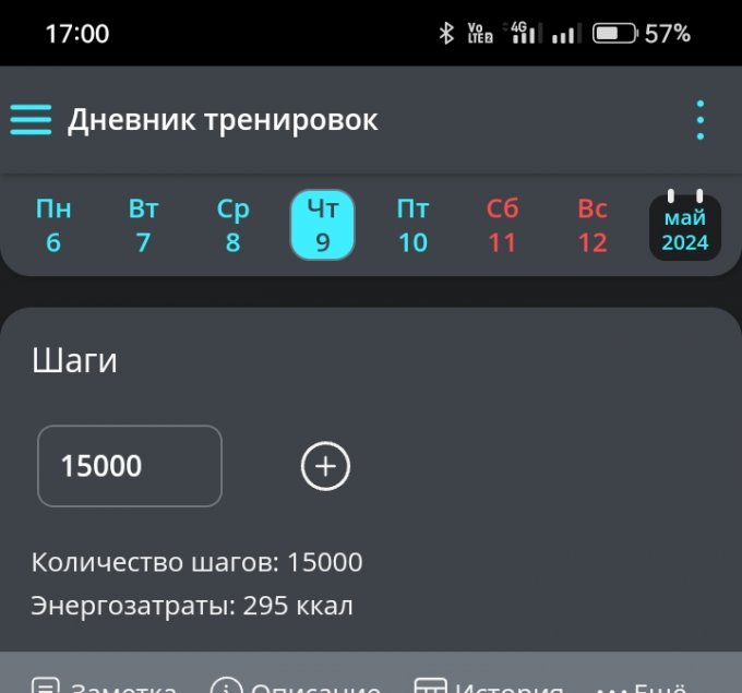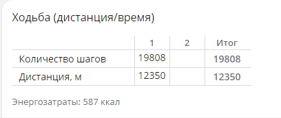 тренировки и просто укажу 20000 шагов, то у меня пишет 700 калорий.