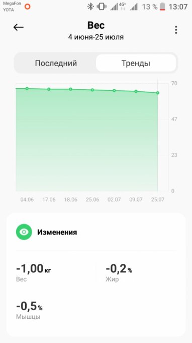 Сейчас стабильно сбрасываю по 0.4-0.5 кг в неделю (даже во время