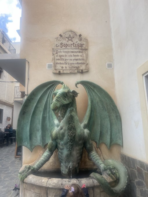 Над фонтанчиком с водой (драконом) надпись, которая гласит: «С