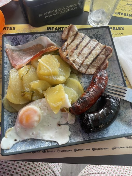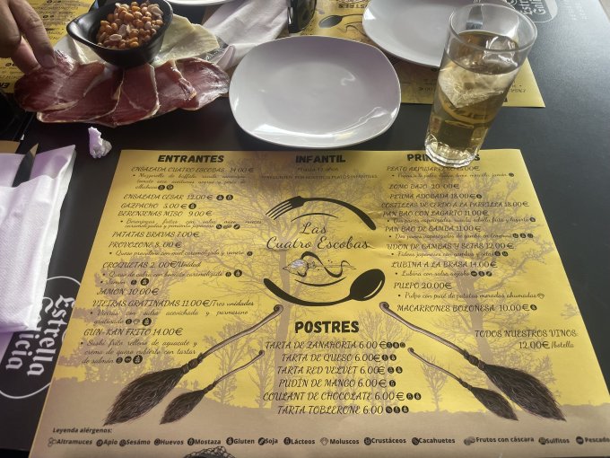 к ним принесли тапу (закуску) бесплатную из хамона и сыра. Чек нам