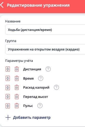 Есть там возможность редактировать упражнение - добавлять или исключать параметры.