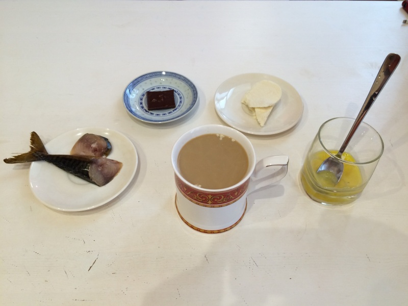 фигурирует кофе со сливками (10%, 50 мл), что-то из рыбы (скумбрия