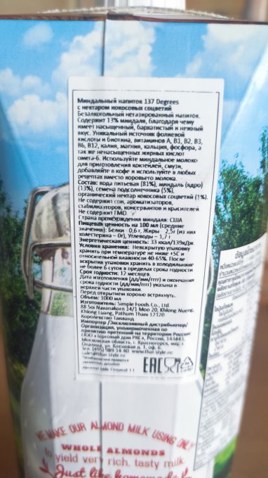 | Миндальное Молоко без Сахара [137 Degrees] |