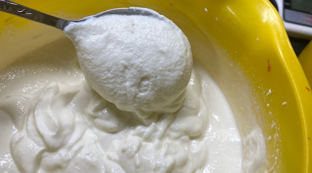 густая сметана, немноготрастекается. На этом этапе, по желанию,