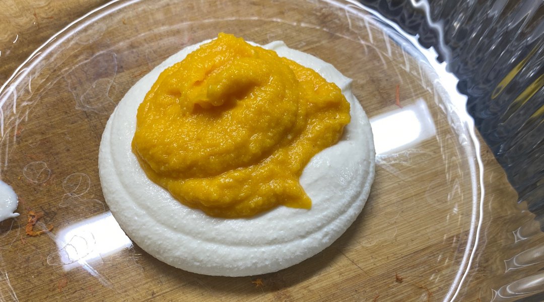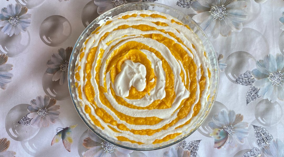 столовой ложки, выкладываем в центр формы творожную и тыквенную