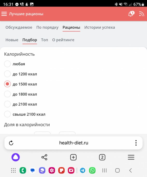 учетом твоих пожеланий. Рацион будет направлен на снижение веса, с