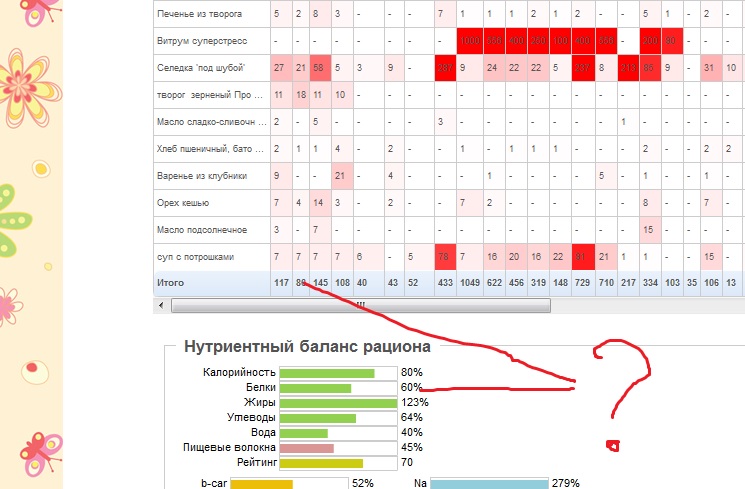| Итого за день | 2805 | 2116.3 | 75.3 | 99.2 | 233.8 |