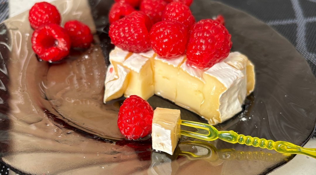 Сыр камамбер жареный с медом и малиной