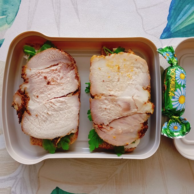 Вот такой перекус был сегодня. Домашний хлеб, домашняя буженина и домашняя же петрушка. Очень вкусно!
