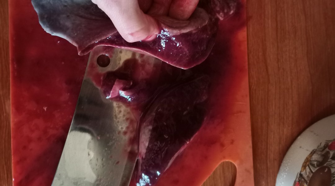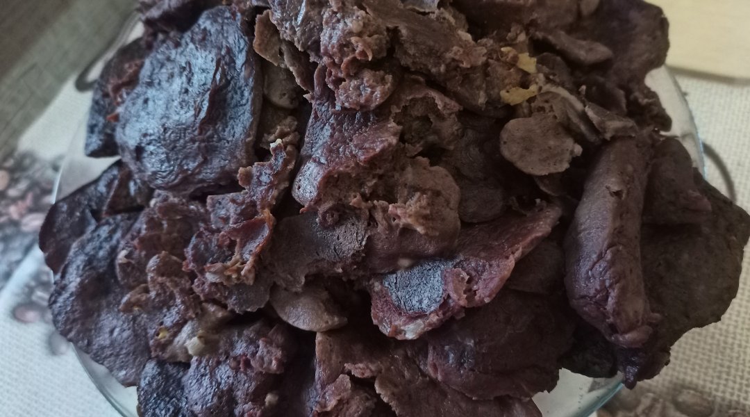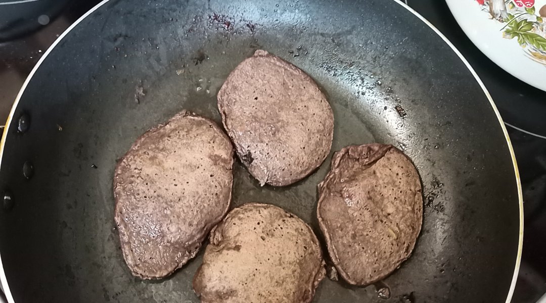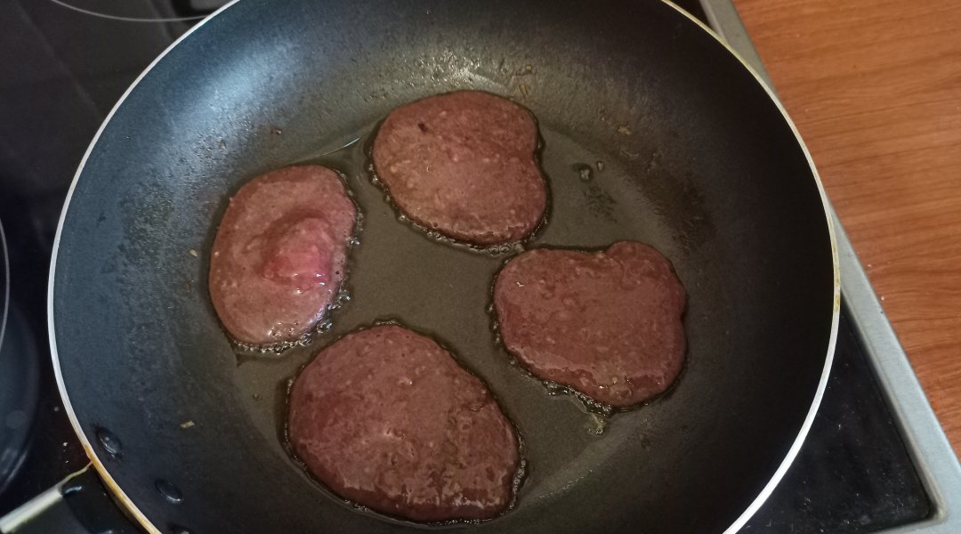В общем, готовилось оно недели 2-3 назад. Есть можно, но просто тушеная селезенка, честно, мне понравилась больше, да и по трудоёмкости гораздо функциональнее получается. Кинула в сковородку, посолила, помешиваем...