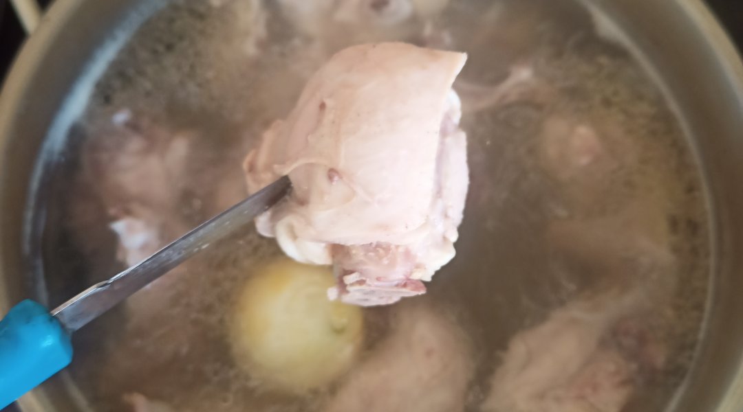 Варка до готовности. Мясо с костей снимается легко, как и прокалывается ножом