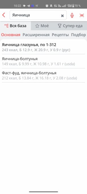Столкнулась вот с какой проблемой. Пытаясь искать по общим базам какие-то стандартные рецепты наподобие: глазунья с помидорами, у меня почему-то не находит рецепт ни в одном из разделов базы.