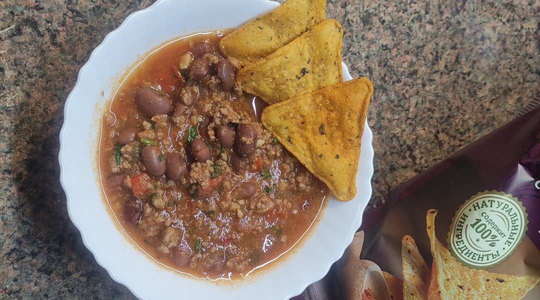 Сытный согревающий густой мексиканский суп из говядины, томатов,