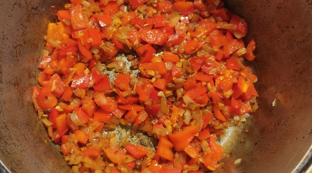 сладких перца, одна луковица, два зубчика чеснока, два больших