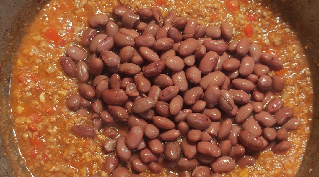 Добавляем промытую фасоль и ещё тушим 10 минут. Затем выключаем