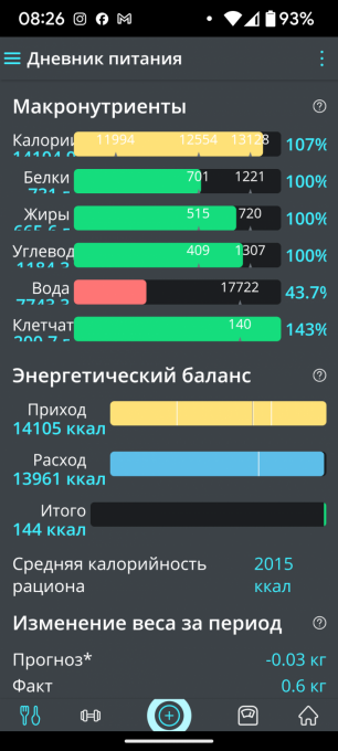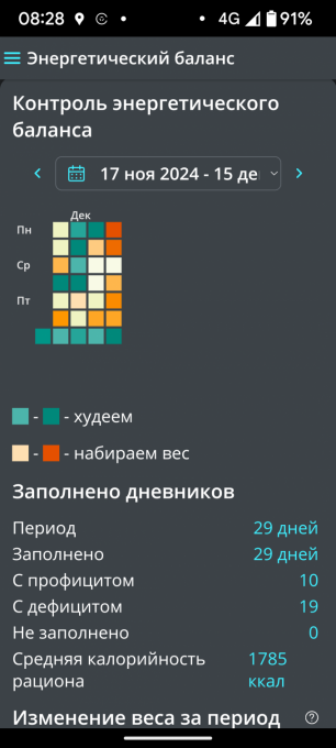 Немножко отчётности. После некоторого периода бесконтрольных поездок, после которых вес подскочил, снова начала вести отчёты месяц назад. Активность поставлена вручную 0%, расход заносила с часов. Часы дают мне 1380 ккал без активности. Чтобы есть больше, надо было двигаться.