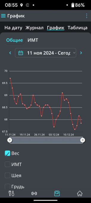 Чтобы увидеть отчеты по питанию и график веса, необходимо войти.