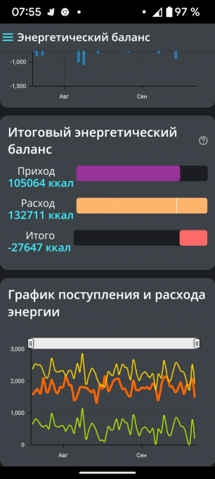 | Итого за день | 1084 | 1832 | 70 | 91 | 179 |