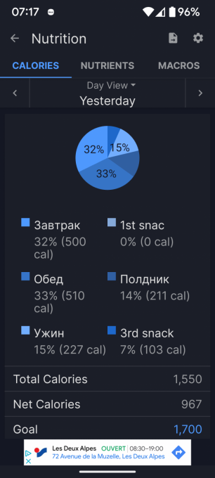 | Итого за день | 2958 | 1623 | 83 | 59 | 182 |
