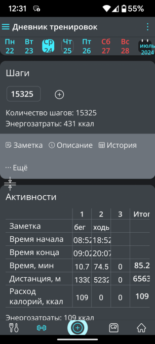среднем в неделю ниже 1700 ккал не бывает - кушать очень хоцца.