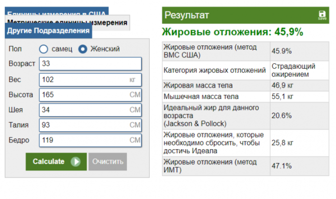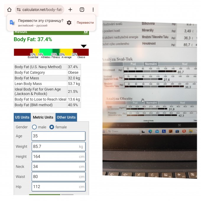 калькулятора и импеданса. По калькулятору % жира - 37.4, а на
