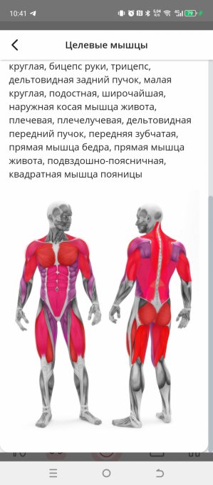 Вот так выглядит результат по целевым мышцам. Вся тренировка от