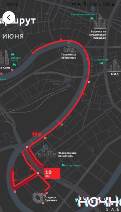 набережным, финиш в Лужниках. Конечно красиво глазу, ночная Москва