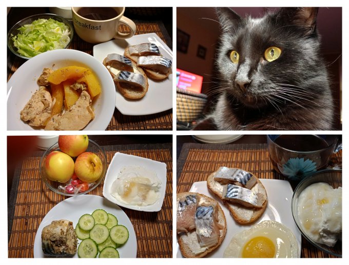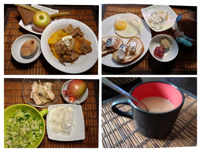 Опять скумбрия. В обед свинина с тыквой. 12г конфетки😄..и 25 лукума..