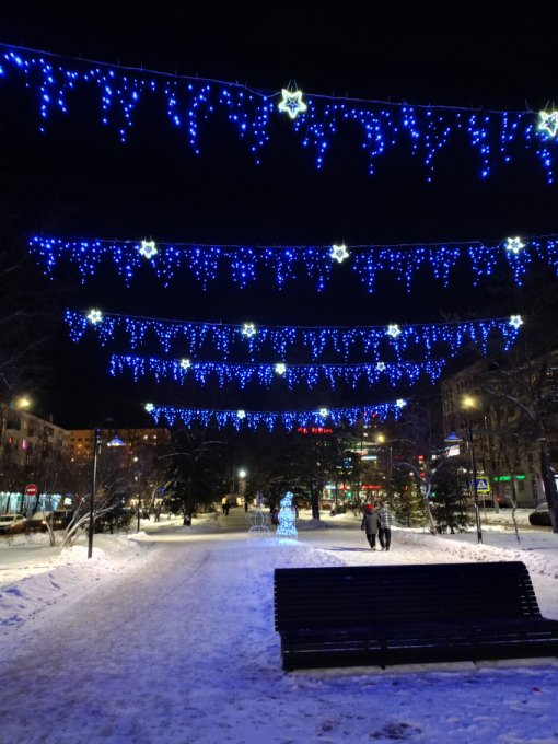 Всю дорогу дергала мужа фотканьем, чем его выбесила. А как такую новогоднюю красоту не фоткать?!Всё блестит и светится.