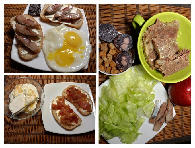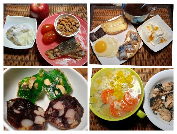 На обед холодец из говядины с тушеными кабачками на сливочном масле+ греческий йогурт. Ужин рыба+ айсберг + сол.огурчик.
