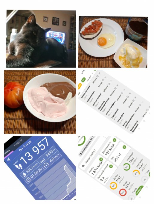 Добрый день! Сон 6-30 Шаги 10 000 За день съела, ...