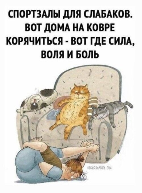 Я дома на коврике коряжусь. Никак в тренажерный зал не собирусь.