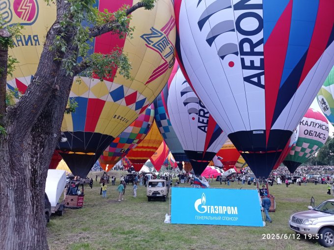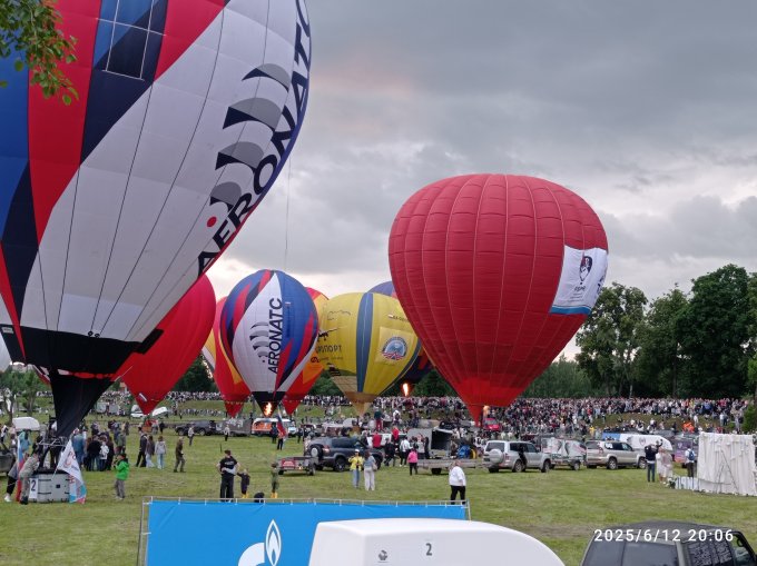 , очень много зрителей было. И шаров много. Дождя почти не было, но облачность низкая, поэтому полёты были невысоко и не далеко. Года четыре назад было ясно, взлёт был массовый и полёт очень долгий. Красота.