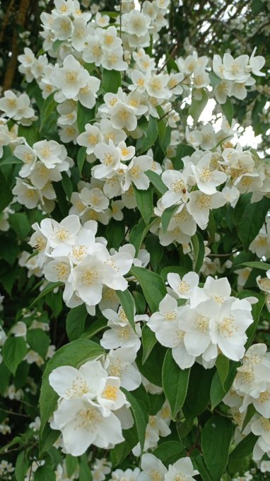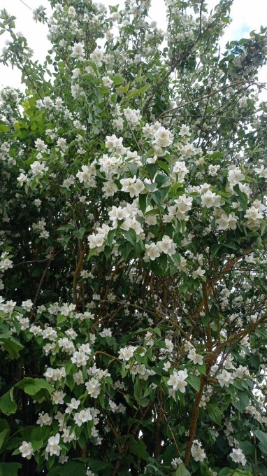 Июнь был сырой и холодный, а такое цветение чубушника вижу первый раз)