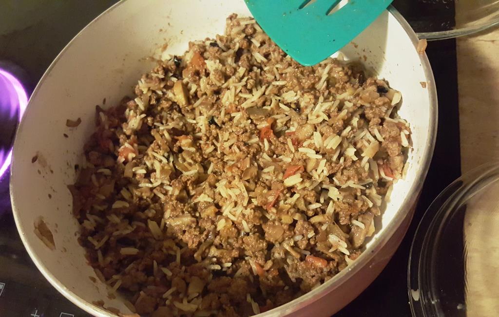 пожарилось/потушилось и порезанные помидоры. рис добавляла уже