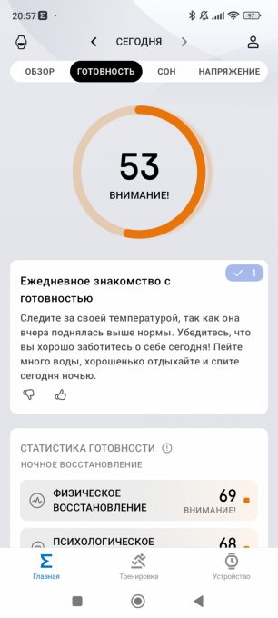 Ну и моя активность, сон, готовность- плохая, часы заметили повышенную температуру