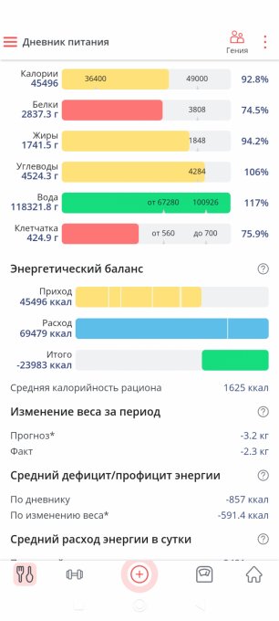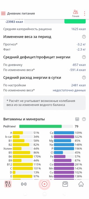 | Итого за день | 4350 | 1580 | 72 | 70 | 163 |