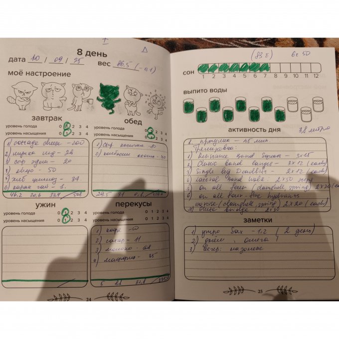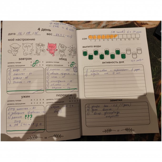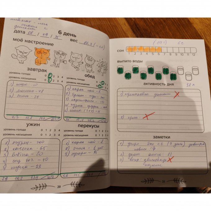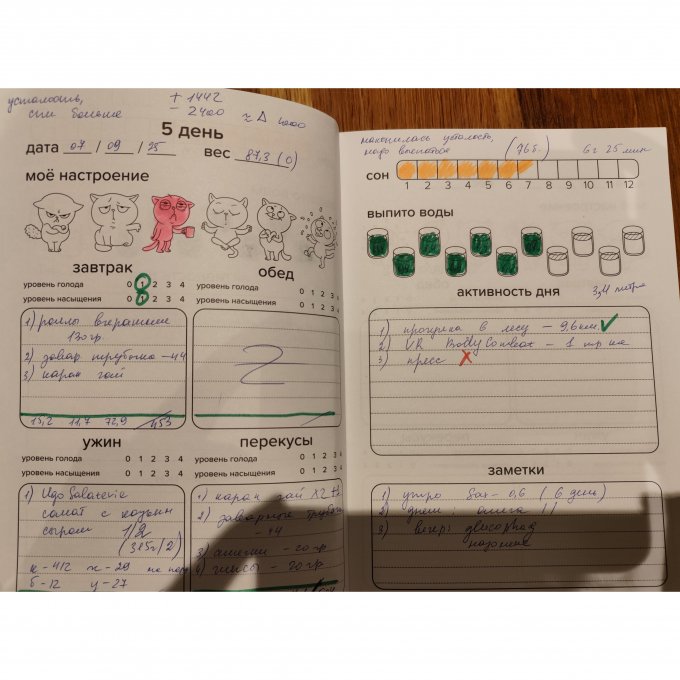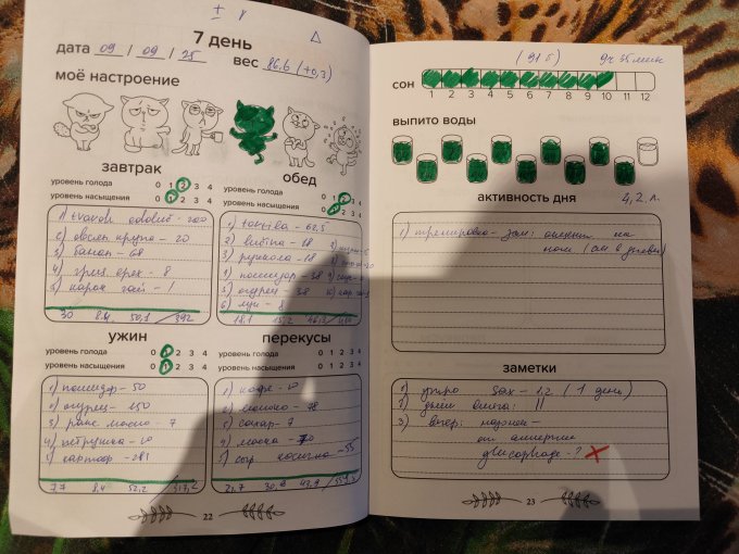 | Итого за день | 5200 | 1504 | 70 | 56 | 172 |
