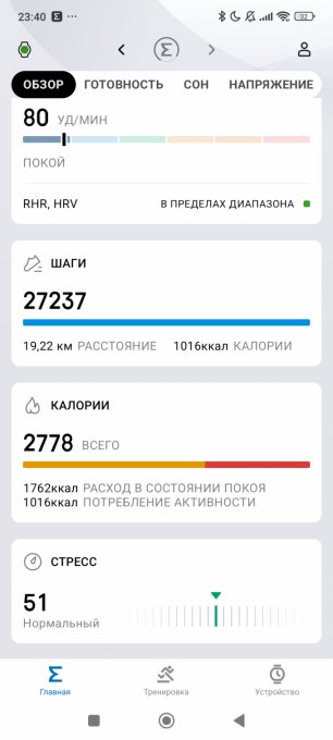 Активность супер. Наверное к вечеру ещё немного нахожу и будет 1000 калорий
