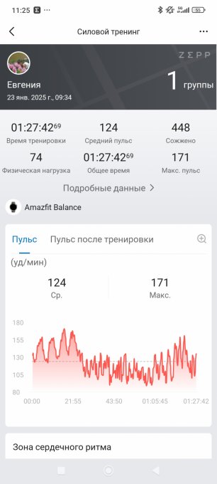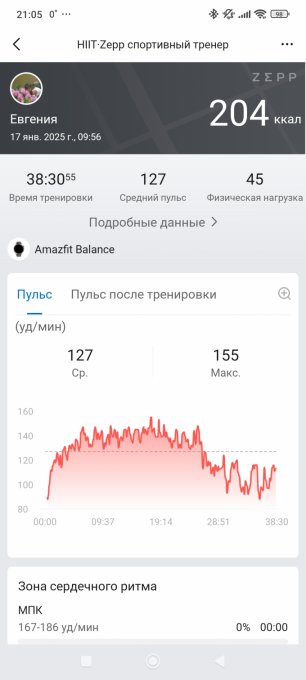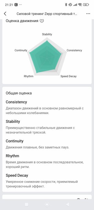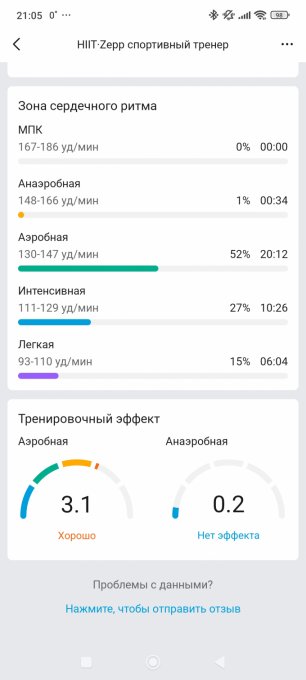 Включала режим тренировки с тренером Zepp,вот какую прикольную оценку он стал делать
