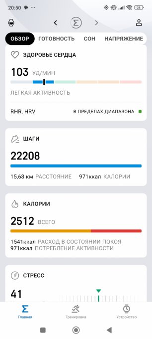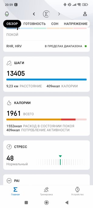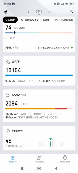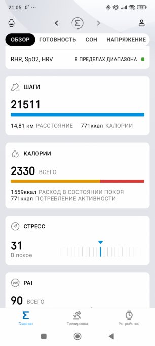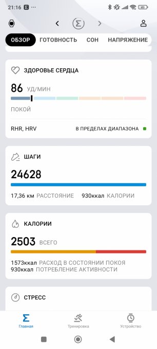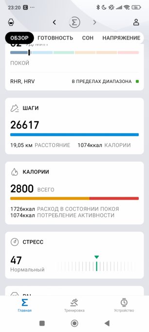В калорийности поставила галочки, так как сегодня была очень большая активность и итоговое значение потраченный калорий к вечеру выйдет в 2700 как