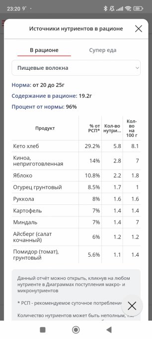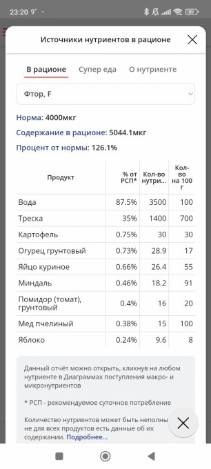 Засчет каких продуктов у вас набраны фтор и клетчатка?