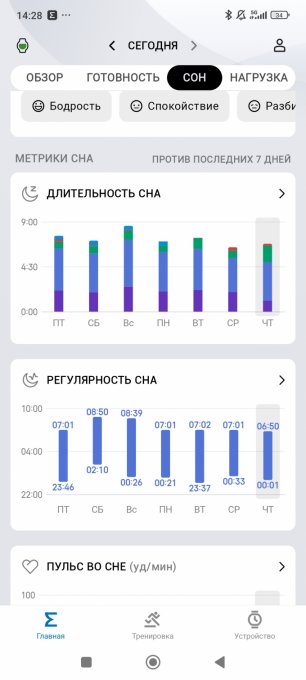 ❌Сон более 7 часов (6ч 02мин )