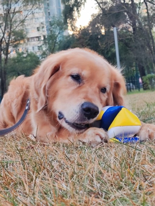 передними лапами мне на плечи и все, конец занятиям. Отправила его